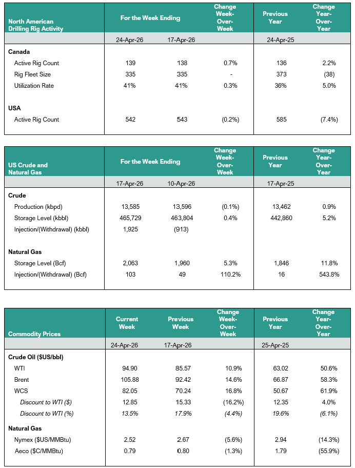 E&P: Shell plc announced the $22B acquisition of ARC Resources Ltd. (TSX:ARX) to complement its existing Canadian footprint in the Montney and to strengthen its resource base. The offer price of $32.80 per share represents a 27% premium from its last closing price on April 24. Both companies estimate annualized synergies to be $250MM post-closing.