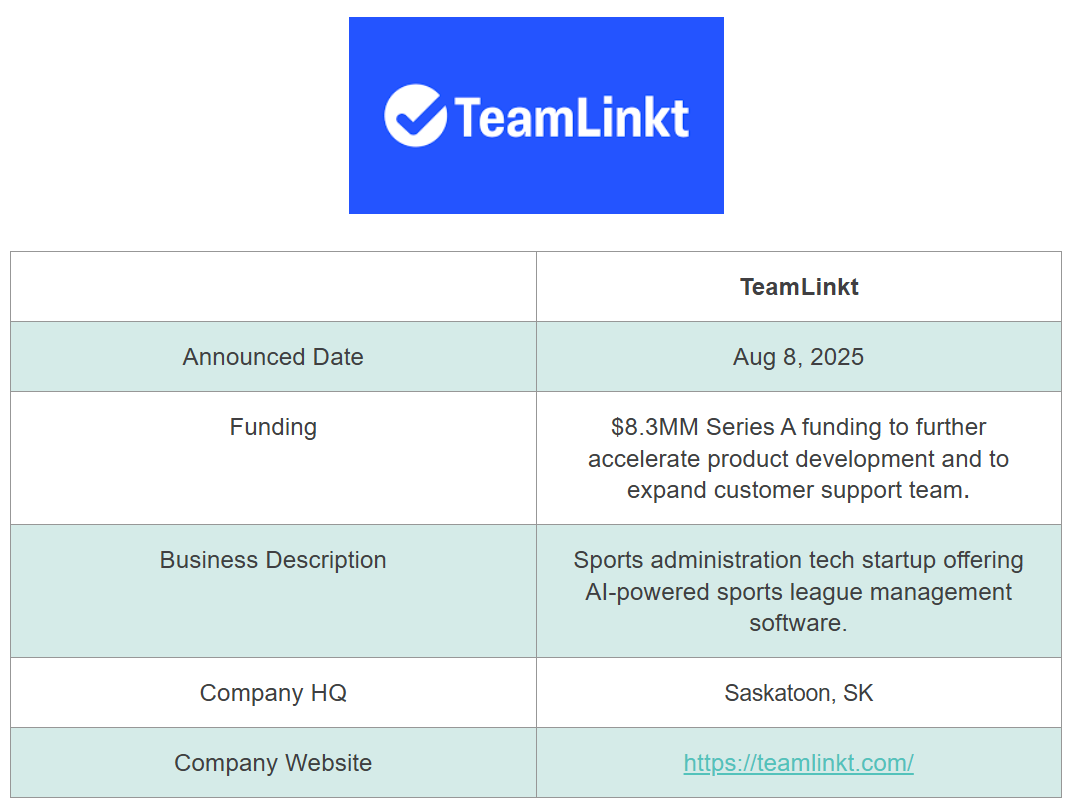 Aug 20 – Montreal based Sovra (former MDF Commerce) acquires Calgary based Ontopical. Acquisition of government intelligence platform provider assisting suppliers identify early-stage opportunities before RFP issuance to enhance vendor offerings.